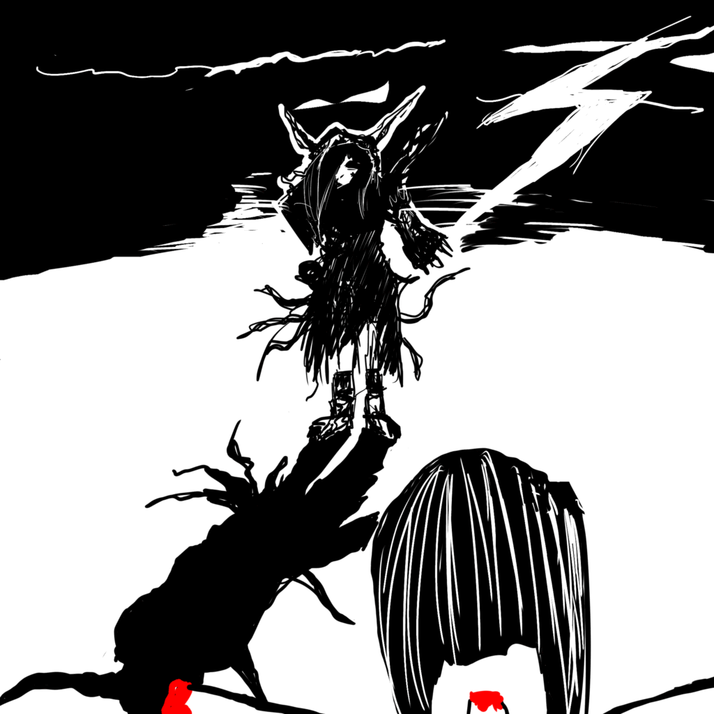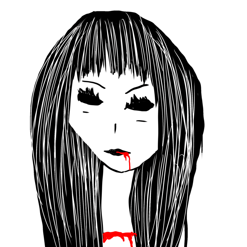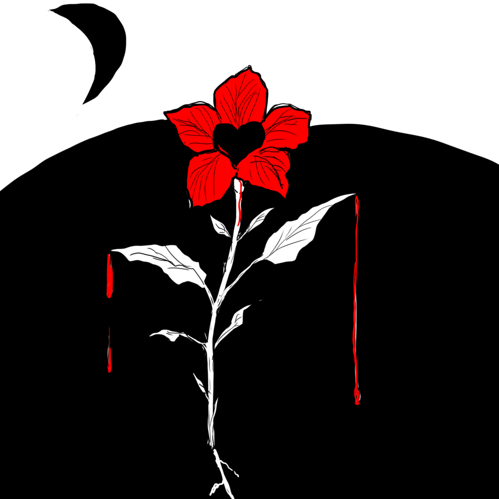 長い黒髪を垂らし、胸には黒いハートの傷を抱え、赤い血を滴らせて……。